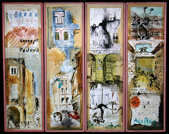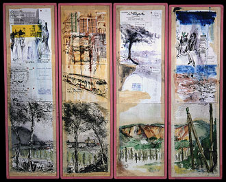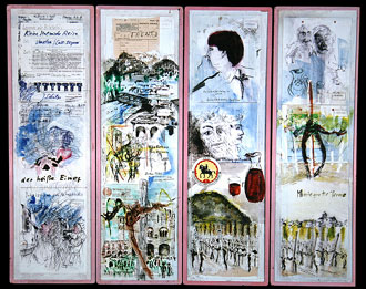 Komposition von Tagebuchblättern von einer Italienreise, Einzeltafel 70 x 30 cm