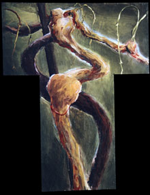 "Weinstöcke" - Auswahl aus einer Serie von 8 Tafeln, Tempera auf Holz, 115 x 90 cm