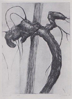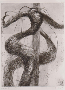 "Nöcks" - Auwahl aus einer Serie von 8 Farbradierungen, 36 x 31 cm"Weinstöcke" - Farbradierung