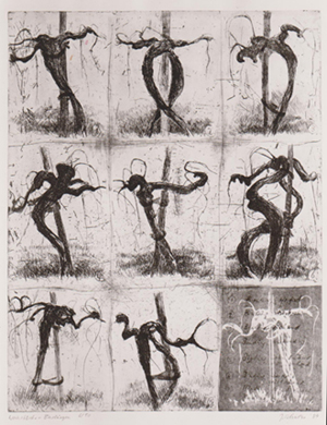 "Weinstöcke" - Auswahl aus einer Serie von 8 Farbradierungen, 47 x 35 cm